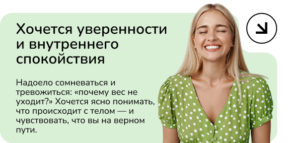 Надоело сомневаться и тревожиться: «почему вес не уходит?» Хочется ясно понимать, что происходит с телом — и чувствовать, что вы на верном пути.