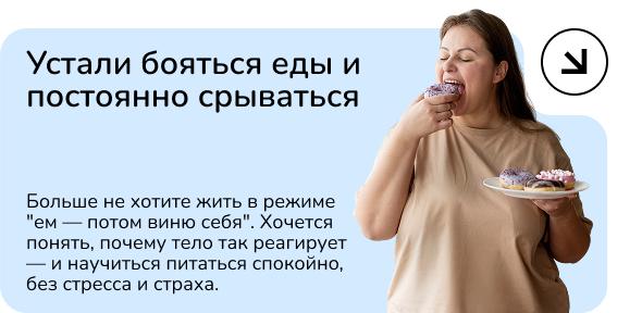 Больше не хотите жить в режиме "ем — потом виню себя". Хочется понять, почему тело так реагирует — и научиться питаться спокойно, без стресса и страха.